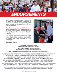 Brown has received endorsements from former President Donald Trump, Former Secretary of State Mike Pompeo, Governor Joe Lombardo, and Senators Steve Daines, Tom Cotton, Mike Lee, and Kevin Cramer.