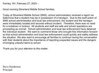 LCSO initially responded to Silverland Middle School after school administration received an anonymous report of a student having a firearm.Â
