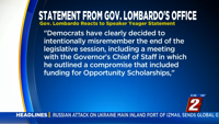 We received a statement from Governor Lombardo's Office that reads in part: "Democrats have clearly decided to intentionally misremember the end of the legislative session, including a meeting with the Governor's Chief of Staff in which he outlined a compromise that included funding opportunity scholarships," unquote.