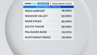 Reno sees wind gusts over 70 mph Wednesday night and over 100 mph in the Sierra
