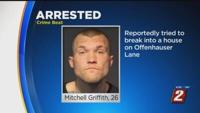 Based on their investigation, detectives say they arrested Griffith on charges of burglary and attempted burglary.