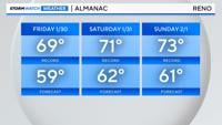 No records are forecasted to be met this weekend, despite highs being in the low 60’s. Records are closer to 70 degrees, and even last January on the 29th Reno made it up to 68 degrees. Perhaps it’s more so about the stretch of mild weather lately, than the individual highs that seem odd.