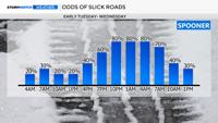 Travel will be worse at night due to colder temperatures and a better chance of the snow sticking to the pavement. A higher sun angle slows down how quickly the snow can accumulate on pavement. When a good snow band moves through, the snow can still accumulate on roadways despite warmer ground temperatures. As the low moves over land, the snow will pick up in intensity late Tuesday, lowering visibility and increasing the odds of slick roads.